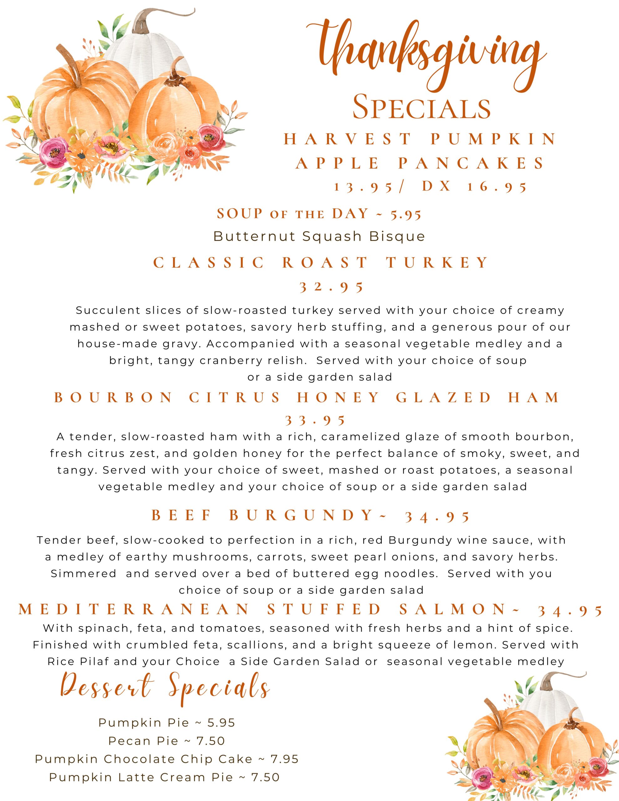 Join us for a welcoming holiday meal at Amphora. Enjoy made-from-scratch Thanksgiving Specials along with our full menu--because there's truly something for everyone to be thankful for. Join us to Dine in or 0rder for pick up or delivery at home.